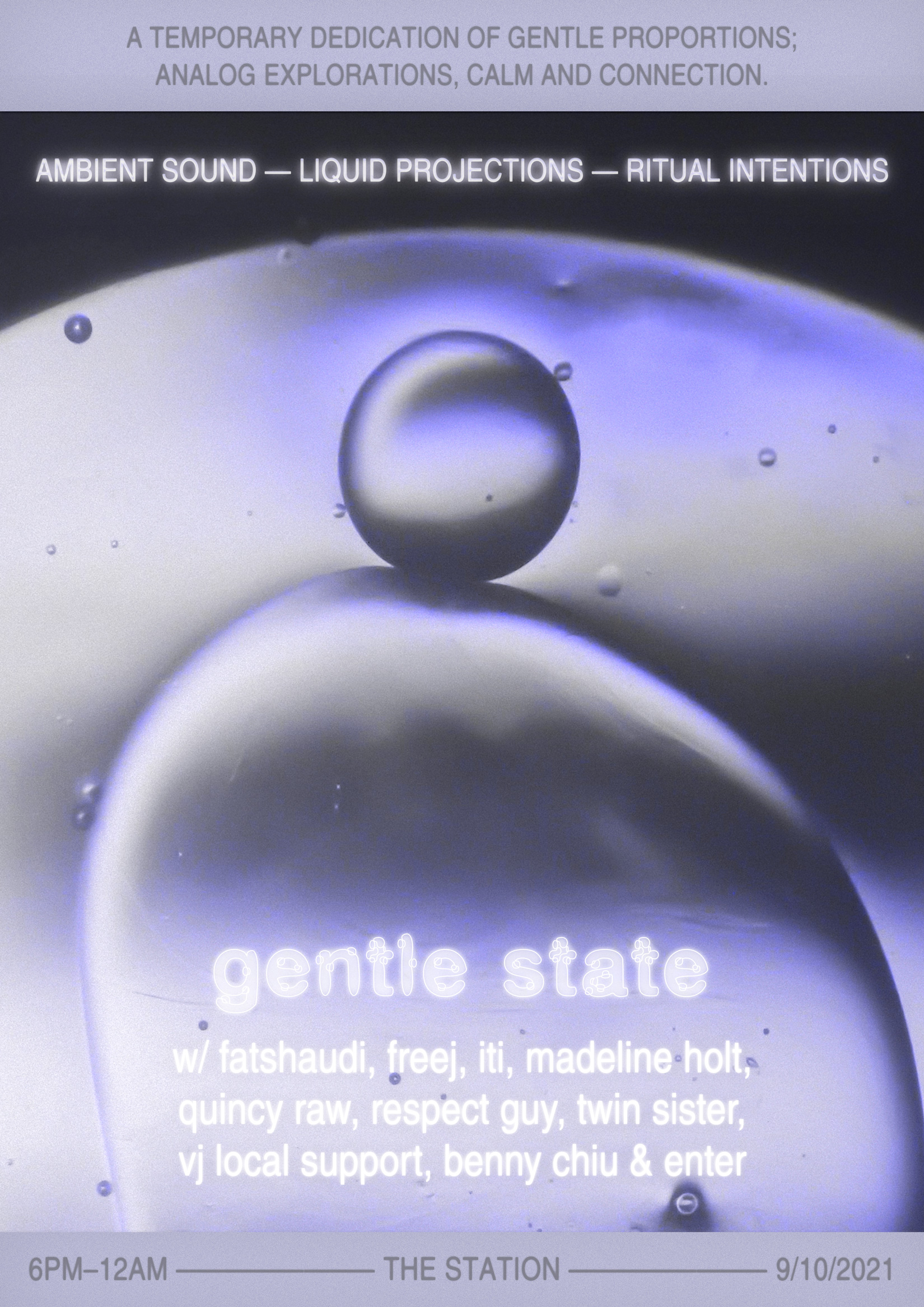 during a time of sustained uncertainty and social hesitancy, this event was an offering for our interior needs; a dedicated space for gentle explorations, uncompromising audio-visual engagement, shared softness and healing.